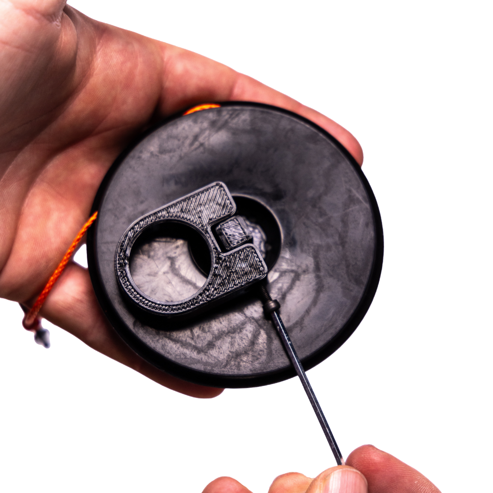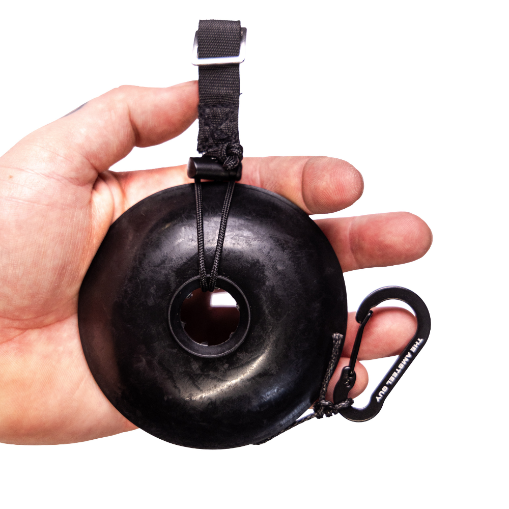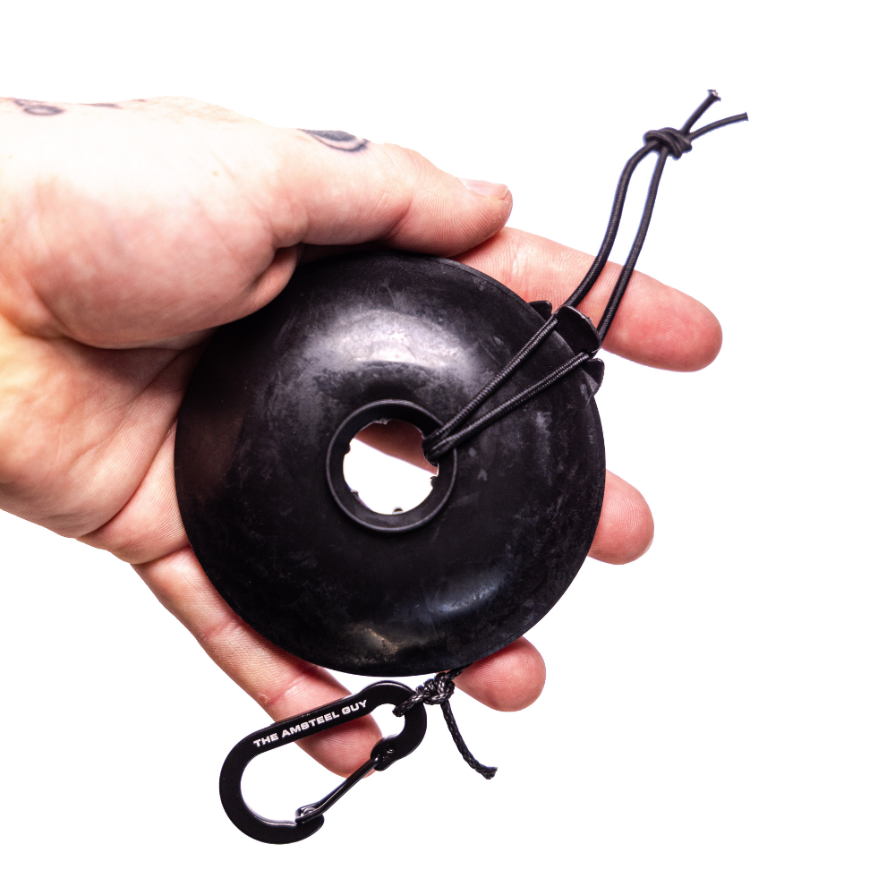 This reimagined mobile version of a bow and hunting gear hoist "pull up rope" design, seen here first from The Amsteel Guy, is made from silicone and designed to hold up to 40' of 2.2mm rope or smaller. The silicone spool is also designed to fold over itself for easy rope containment and storage. Each Pocket Pull Up Rope includes a small 2in carabiner.